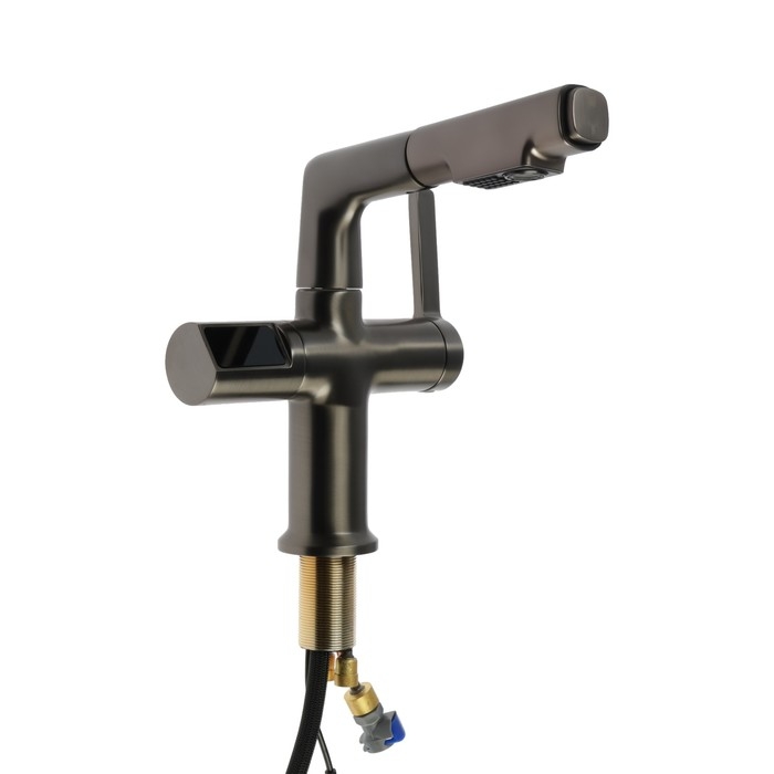 Смеситель для кухни ZEIN Z3782, экран температуры, вытяжной излив, высота 18-25 см, 2 режима