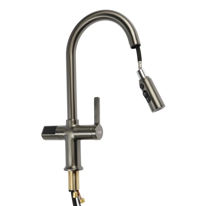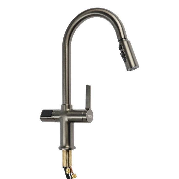 Смеситель для кухни ZEIN Z3783, экран температуры, вытяжной излив, высота 23 см, 3 режима