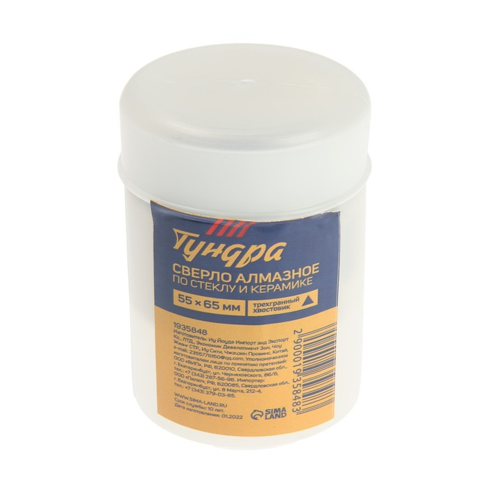 Сверло алмазное по стеклу и керамике ТУНДРА, трехгранный хвостовик, 55 х 65 мм