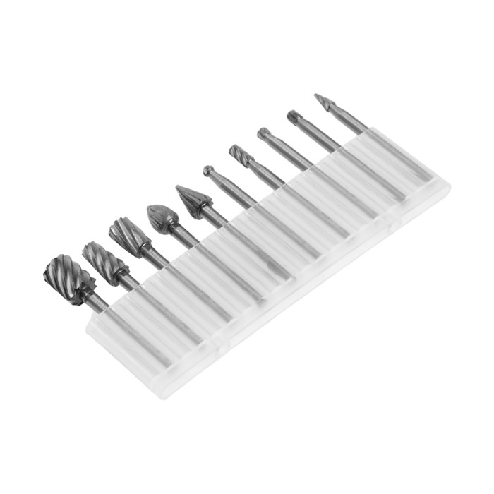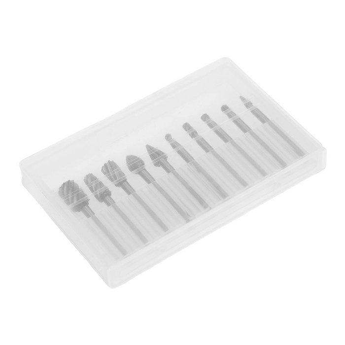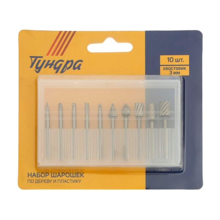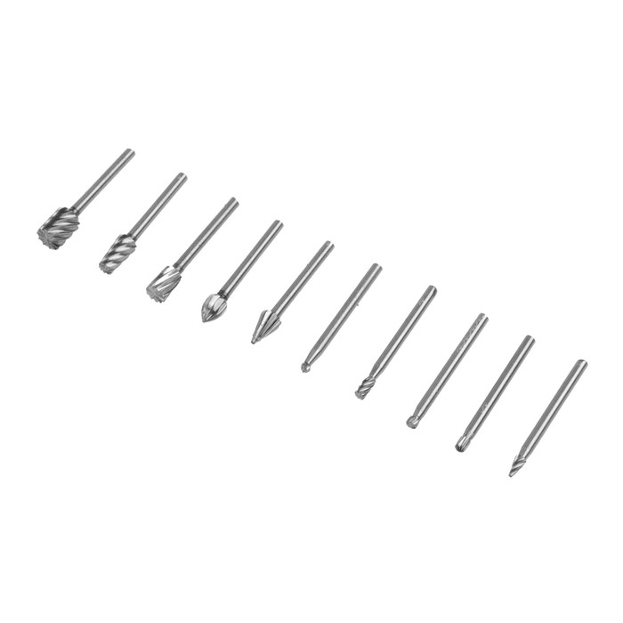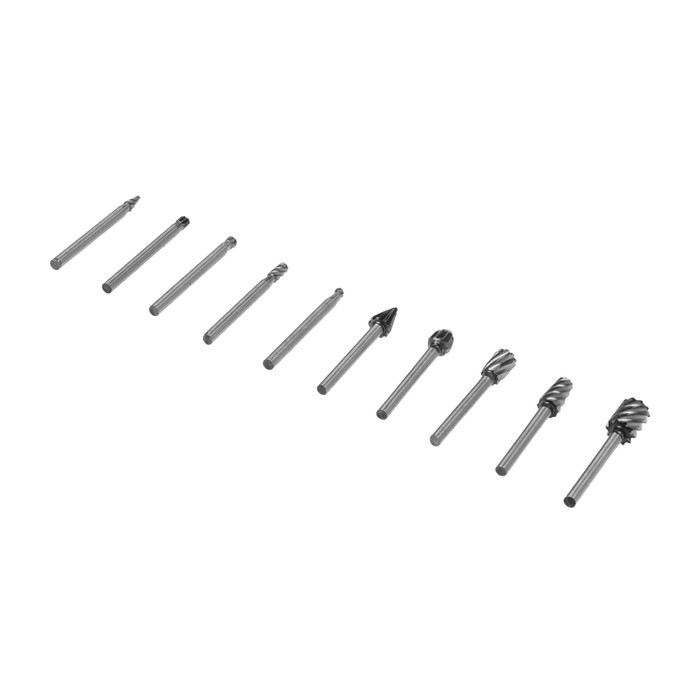 Набор шарошек по дереву и пластику ТУНДРА, диаметр хвостовика 3 мм, 10 шт.
