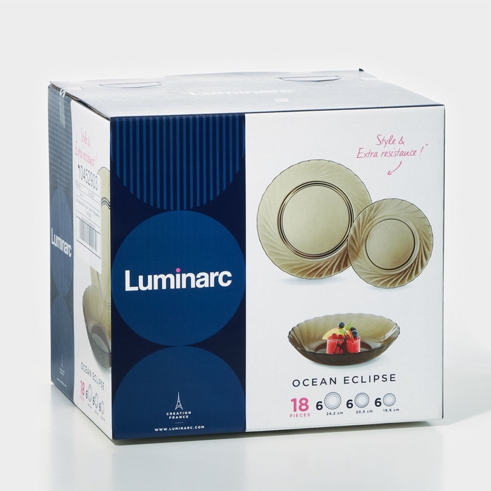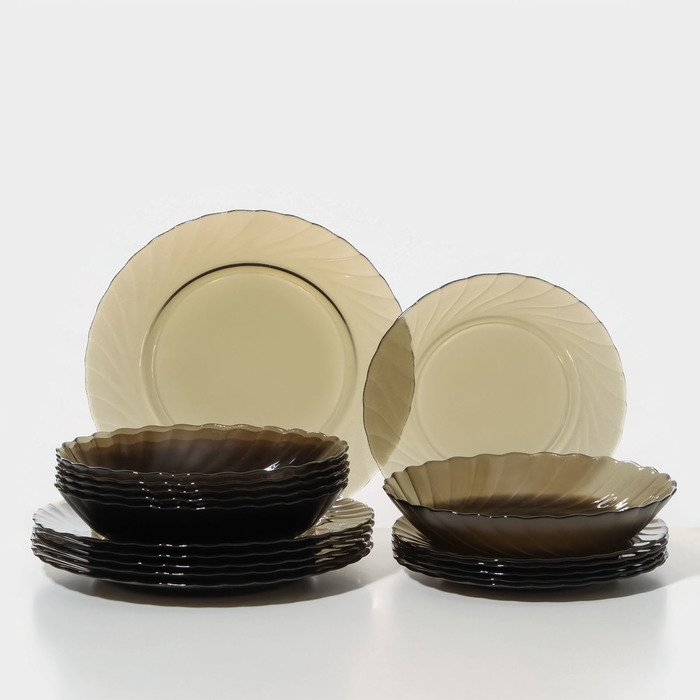 Набор тарелок стеклянных Доляна «Дольче», 19 предметов: 6 десертных тарелок, 6 обеденных тарелок, 6 мисок, салатник