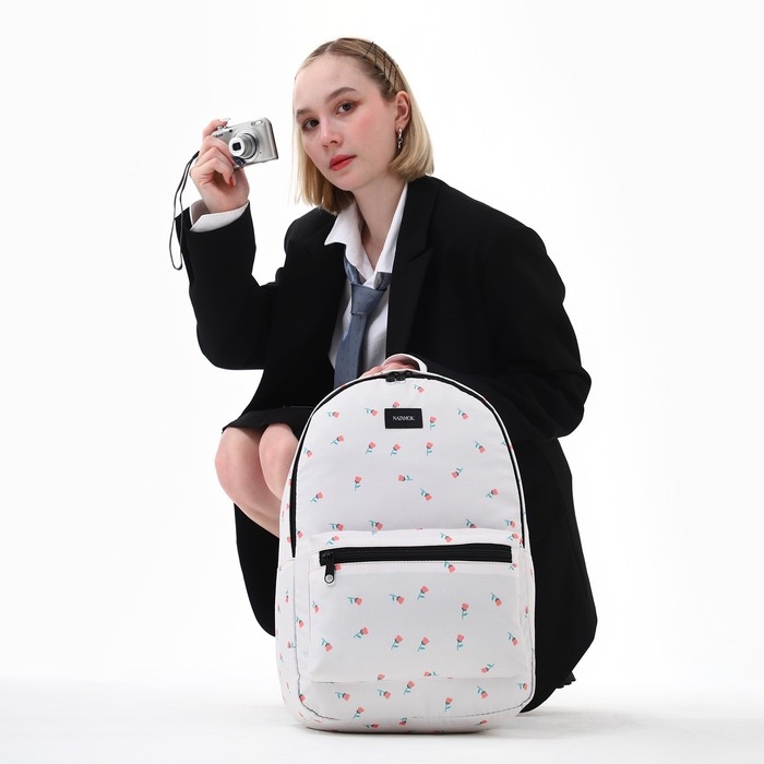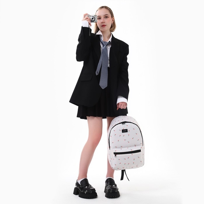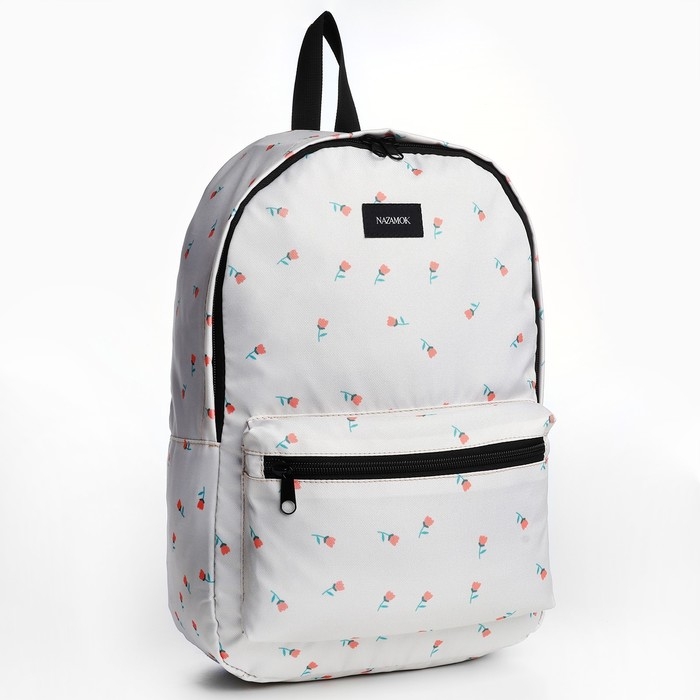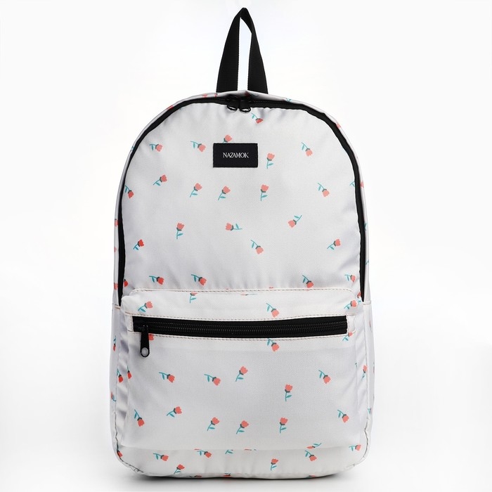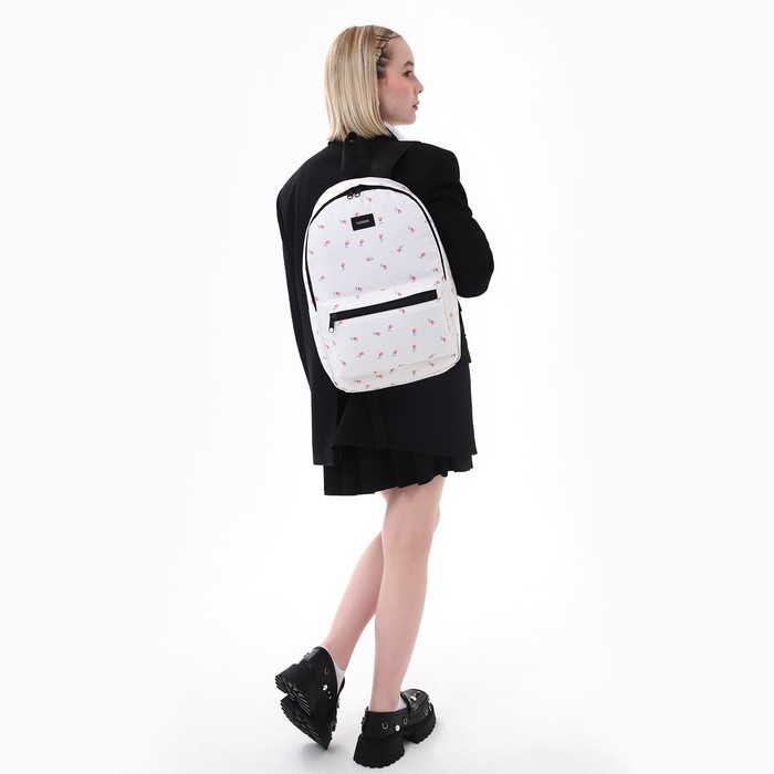 Рюкзак школьный текстильный «Цветы», 42х14х28 см, цвет белый