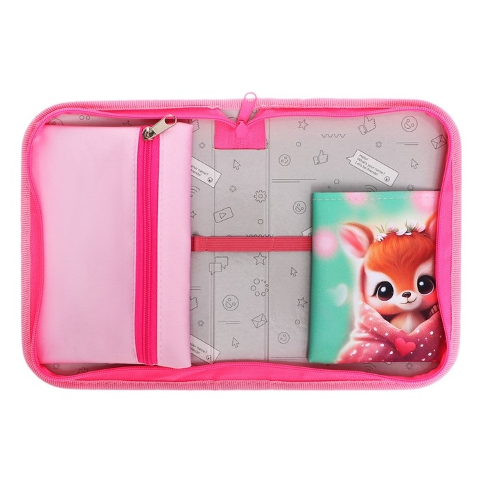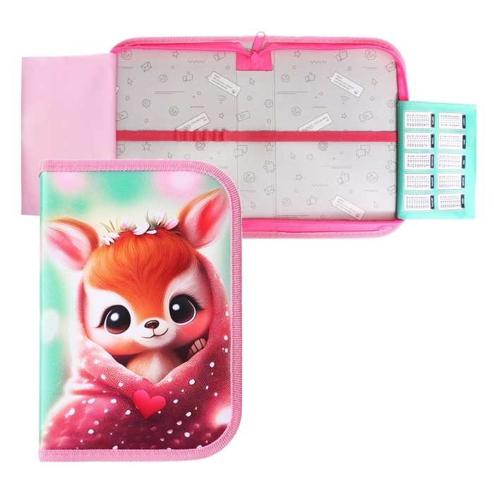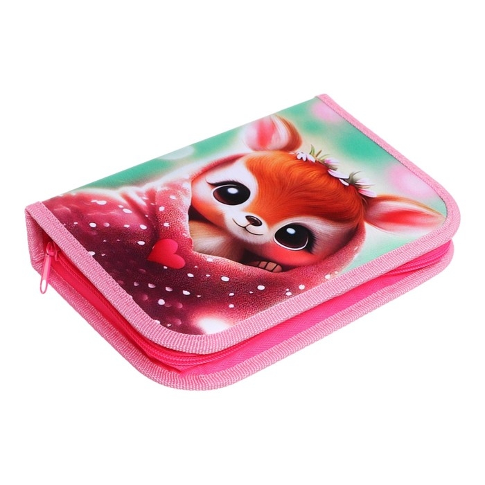 Пенал 1 секция 140 х 210 х 40 мм, откидной карман и косметичка, тканевый, Calligrata TOP Content "Олененок"