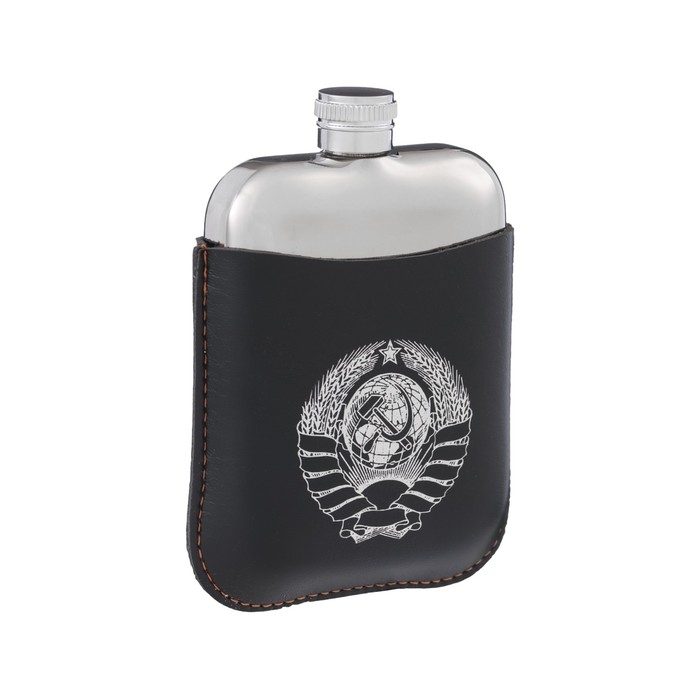 Фляжка для алкоголя "Герб СССР", нержавеющая сталь, чехол, подарочная, 180 мл, 6 oz