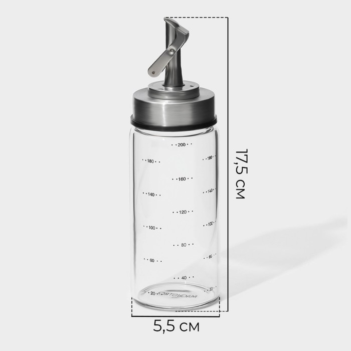 Бутылка стеклянная для соусов и масла с мерной шкалой Magistro «Мист», 200 мл, 5,5×17,5 см