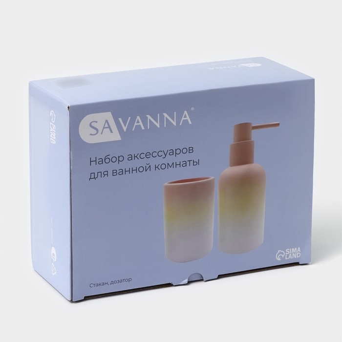 Набор аксессуаров для ванной комнаты SAVANNA, 2 предмета: дозатор для мыла 290 мл, стакан 280 мл