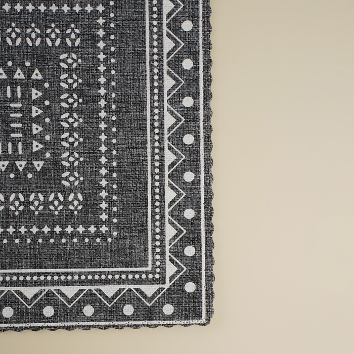 Салфетки изготовлены из качественного сочетания полиэстера и хлопка, что обеспечивает их долговечность и стойкость к износу. Прямоугольная форма и нейтральный серый цвет гармонично вписываются в любой дизайн, а узорчатая тематика добавляет изысканности.