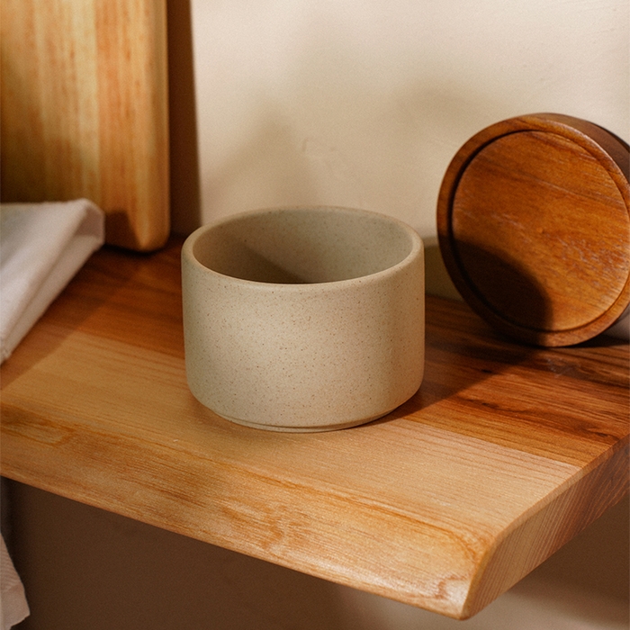 - Эстетичный дизайн: гладкая текстура и натуральный цвет делают банку идеальным элементом декора.