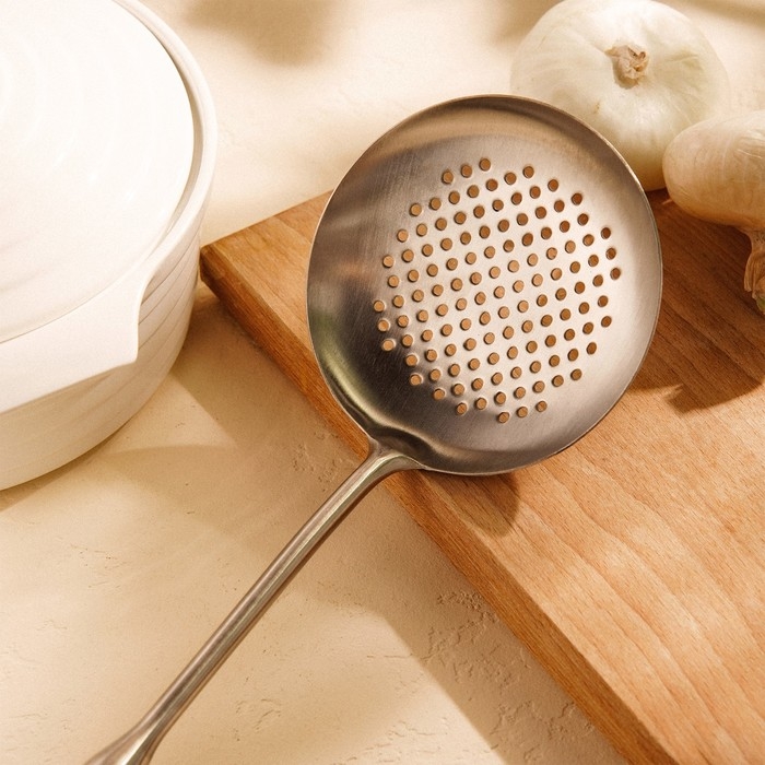 Шумовка из нержавеющей стали SLHome, «Рустик» 39×12,5 см, цвет серебряный