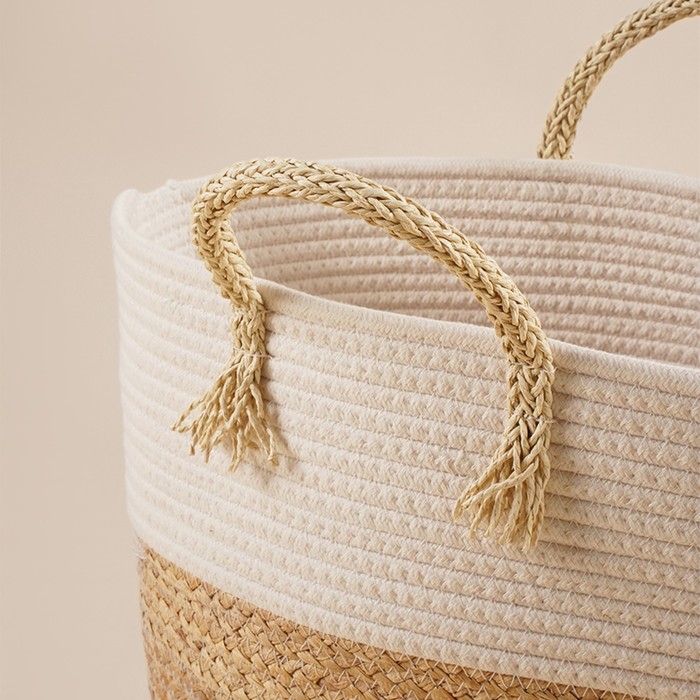 - Натуральные материалы: корзина изготовлена из хлопка и гиацинта, что делает её экологически чистой и безопасной для здоровья.