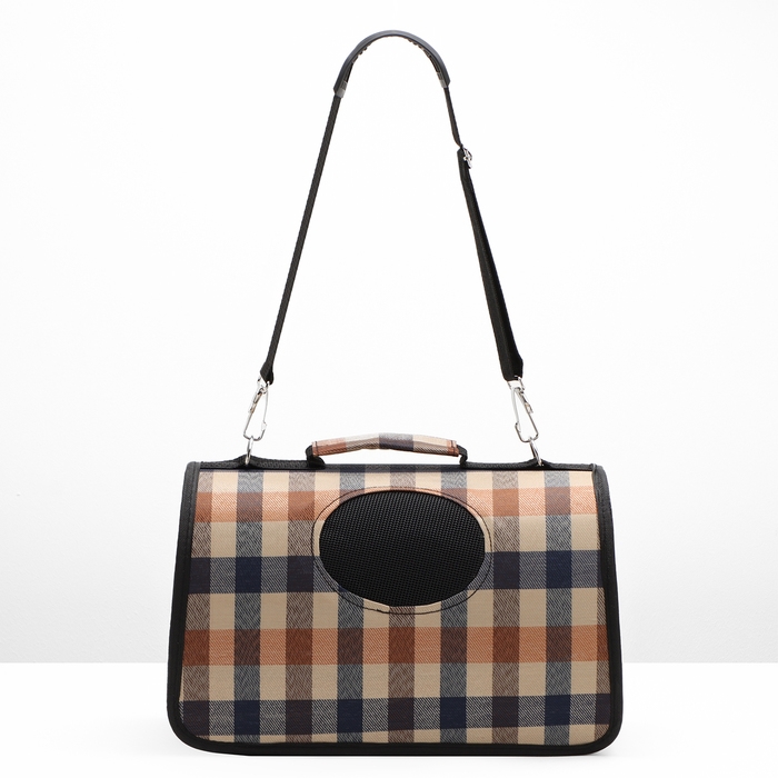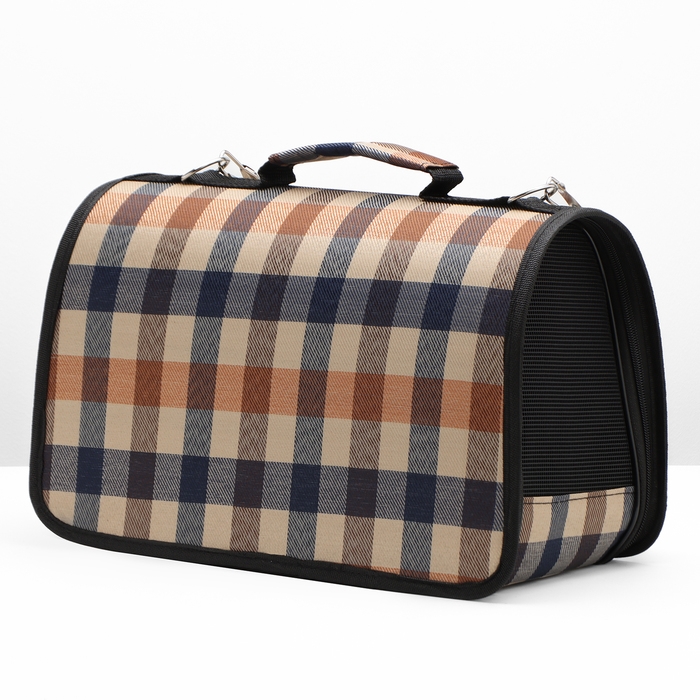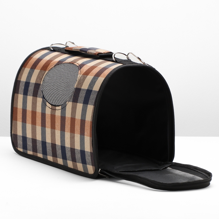 Сумка-переноска каркасная со шторкой, размер S, 37 х 20х 24 см, клетчатая