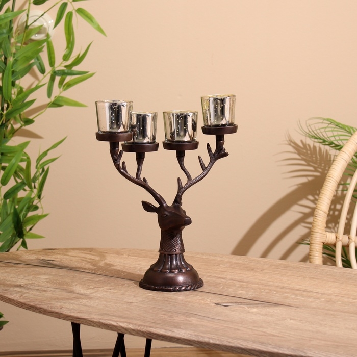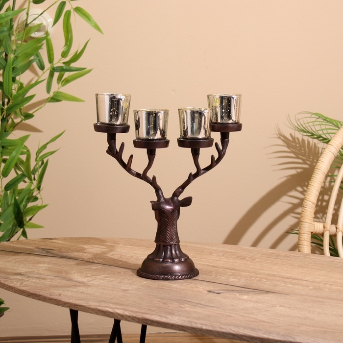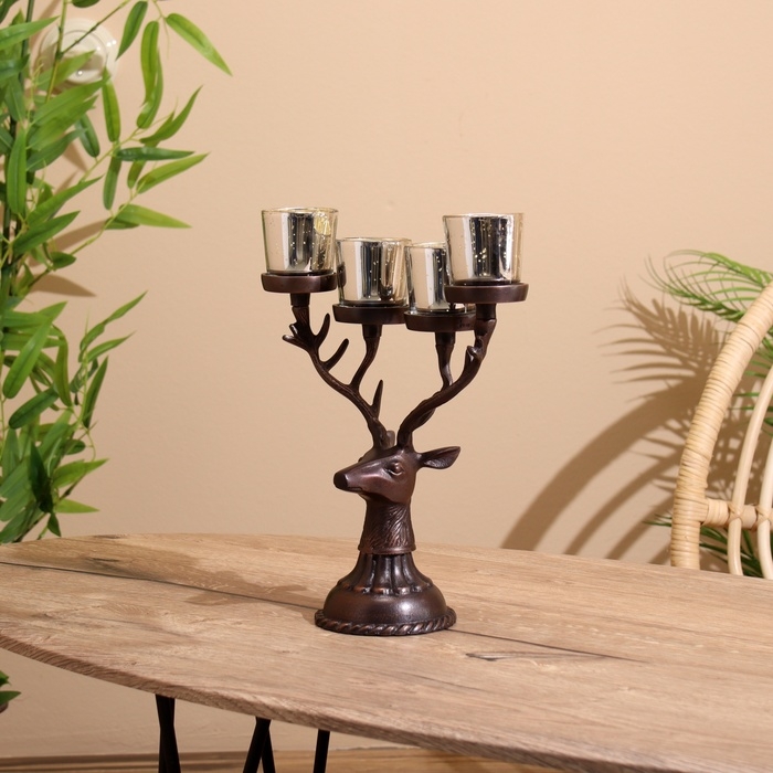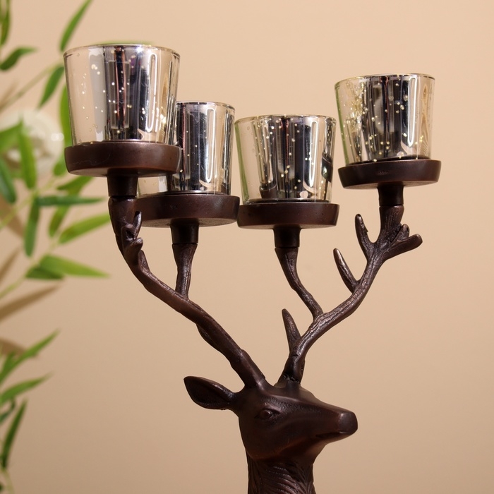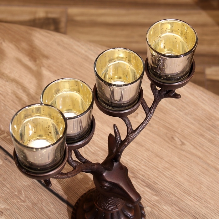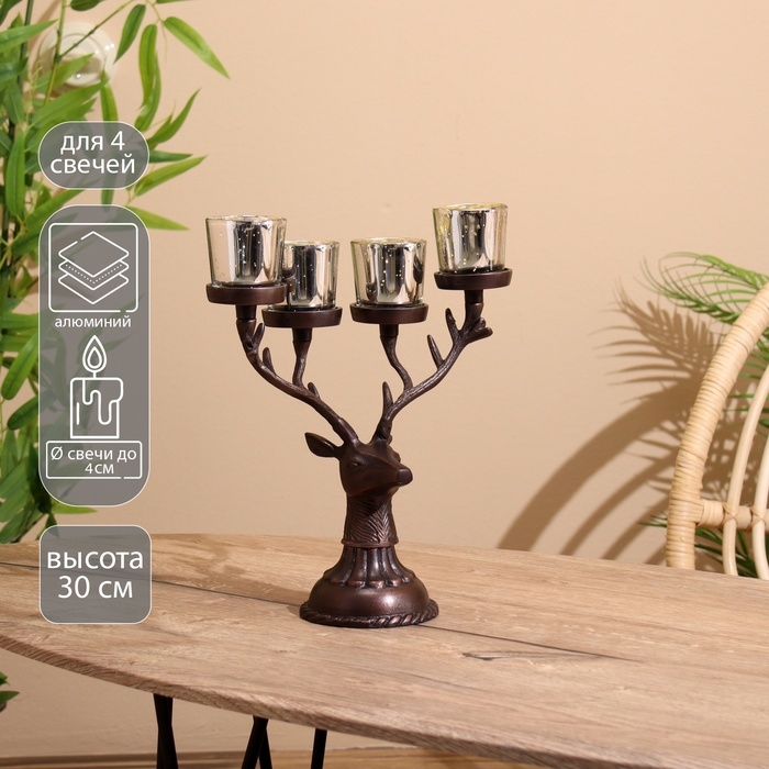 Подсвечник на 4 свечи "Олень" алюминий 26х13х30 см