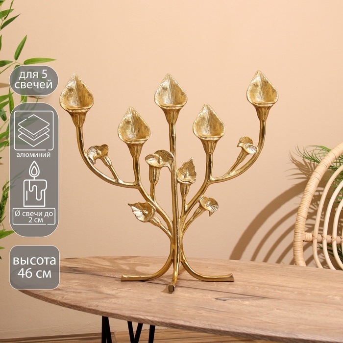 Подсвечник на 5 свечей "Цветы" алюминий 47х25х46 см