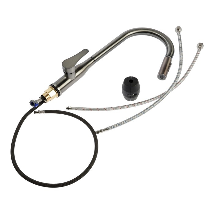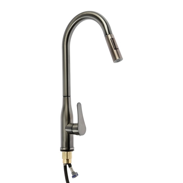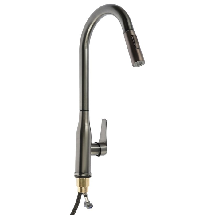 Смеситель для кухни ZEIN Z3780, однорычажный, вытяжной излив, аэратор 2 режима, графит