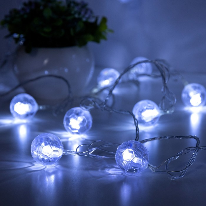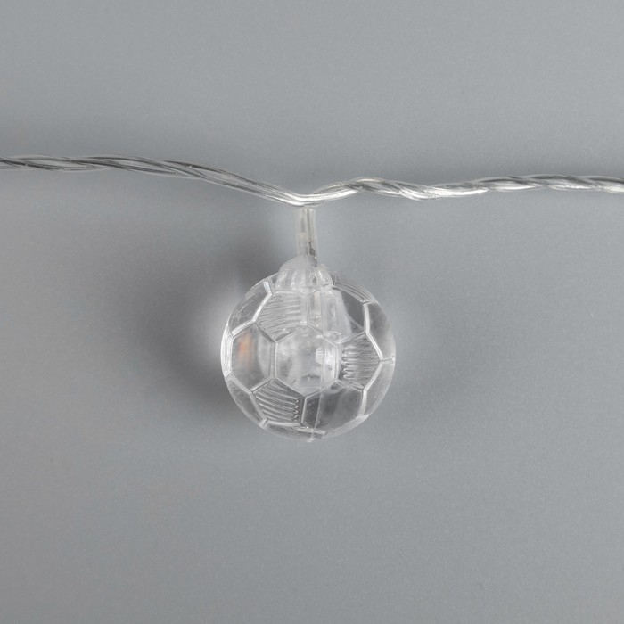 Гирлянда «Нить» 5 м с насадками «Футбольный мяч», IP20, прозрачная нить, 20 LED, свечение белое, 8 режимов, 220 В