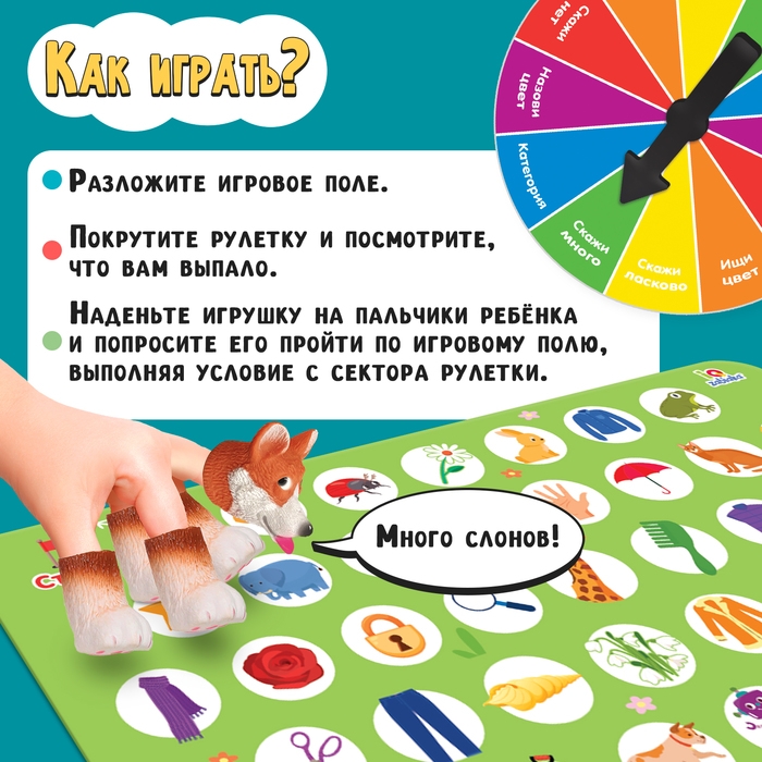 - Если ребёнок не может найти подходящий кружок в пределах досягаемости, покрутите рулетку ещё раз.