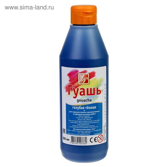Гуашь "Луч", 500 мл, голубая тёмная