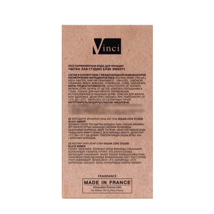 Парфюмерная вода женская Vegan Love Studio Black Amber, 50 мл (аромат Black Pepper & Amber, Neroli)