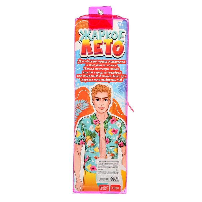 Кукла «Жаркое лето» – это стильный мальчик с короткими волосами, одетый в яркую рубашку и удобные шорты. Высота куклы составляет 31 см, что делает её удобной для сюжета любой игры.