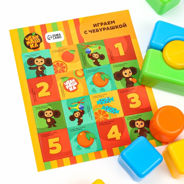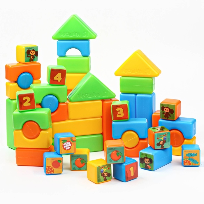 Набор цветных кубиков, "Чебурашка", 60 элементов, 4х4 см