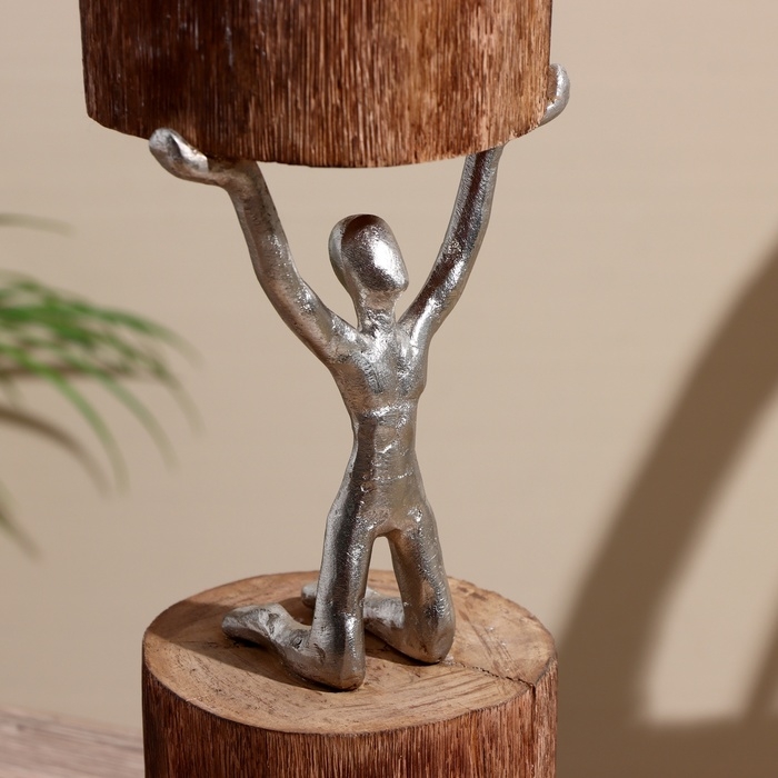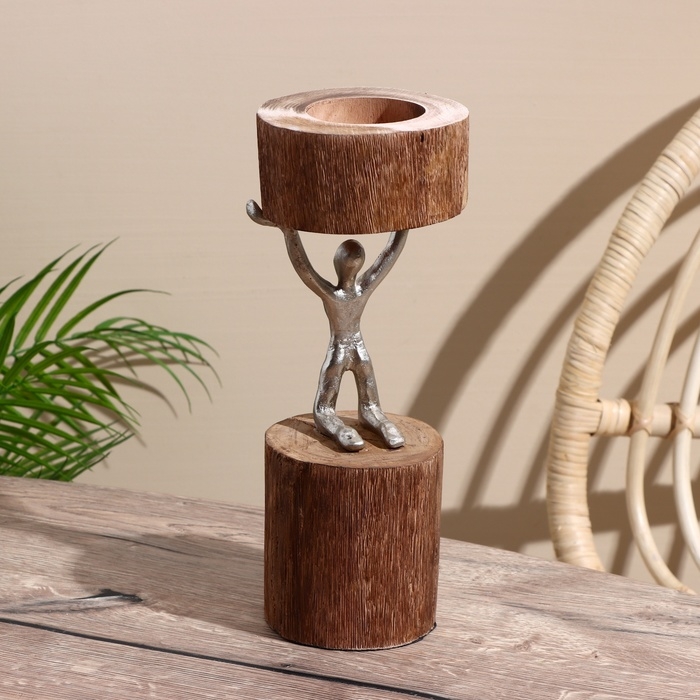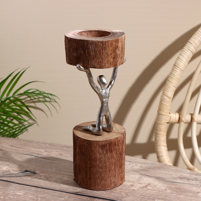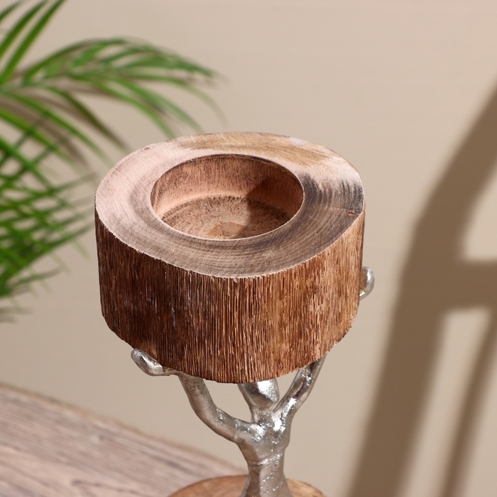 Подсвечник "Воля" алюминий, манговое дерево 10х10х32 см