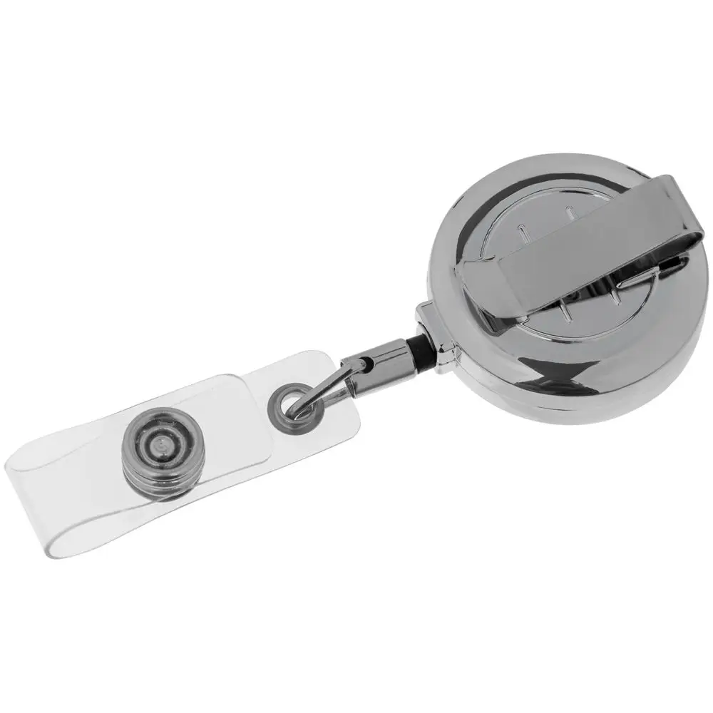 Ретрактор крепится к одежде, а с другой стороны можно поместить бейдж, визитку или магнитную карту. В корпусе спрятан сворачивающийся шнур, который позволяет при необходимости демонстрировать содержимое держателя, не снимая его.