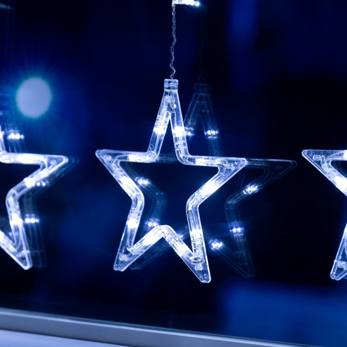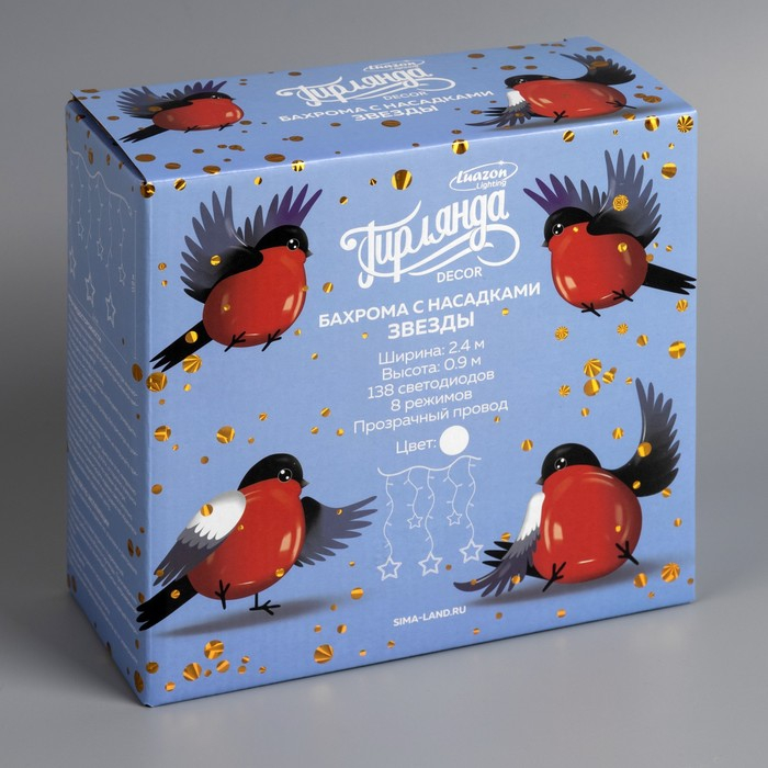 Гирлянда «Бахрома» 2.4 × 0.9 м с насадками «Звёзды», IP20, прозрачная нить, 138 LED, свечение белое, 8 режимов, 220 В