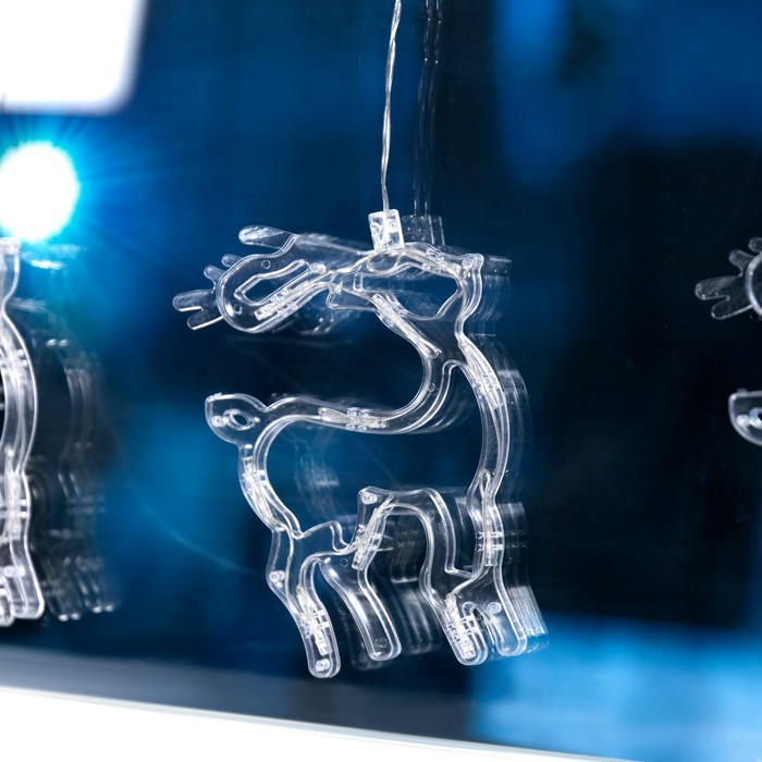Гирлянда «Бахрома» 2.4 × 0.9 м с насадками «Олень», IP20, прозрачная нить, 138 LED, свечение белое, 8 режимов, 220 В