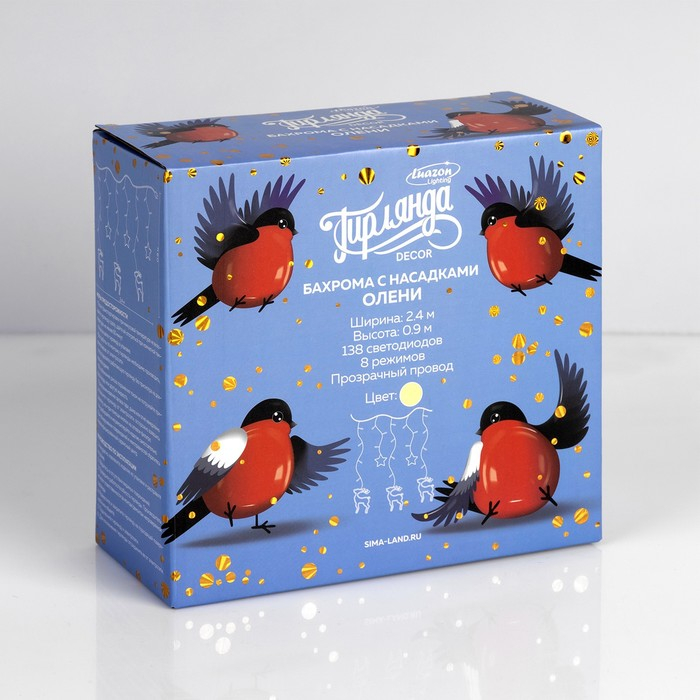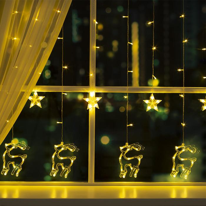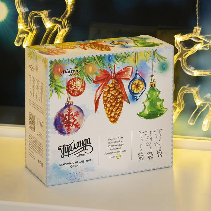 Гирлянда «Бахрома» 2.4 × 0.9 м с насадками «Олень», IP20, прозрачная нить, 138 LED, свечение тёплое белое, 8 режимов, 220 В