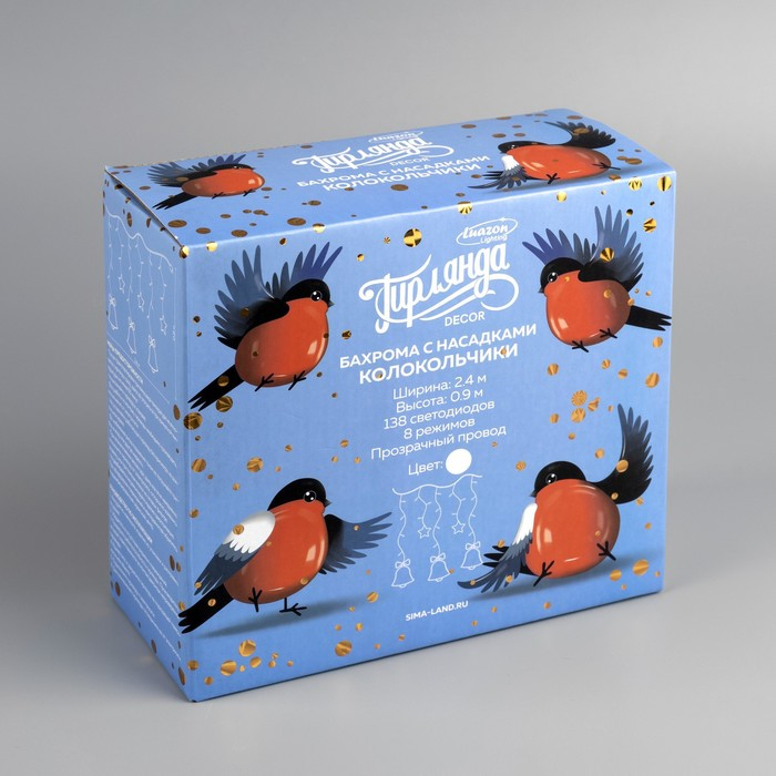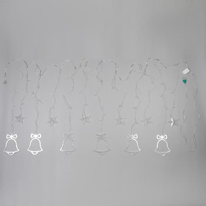 Гирлянда «Бахрома» 2.4 × 0.9 м с насадками «Колокольчики», IP20, прозрачная нить, 138 LED, свечение белое, 8 режимов, 220 В