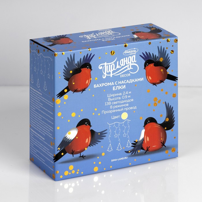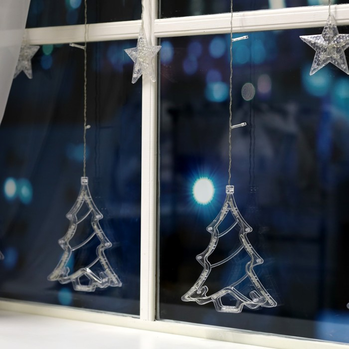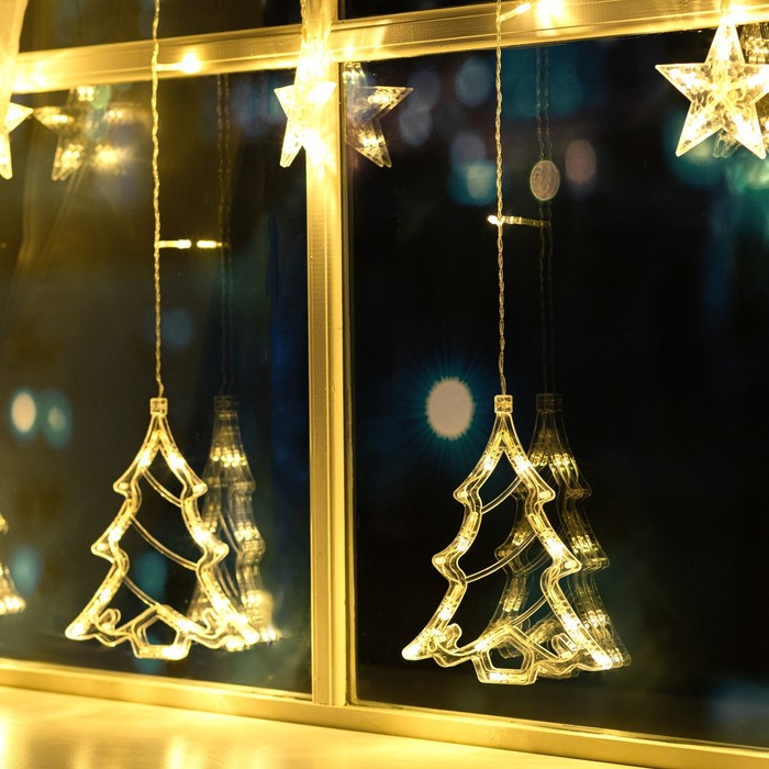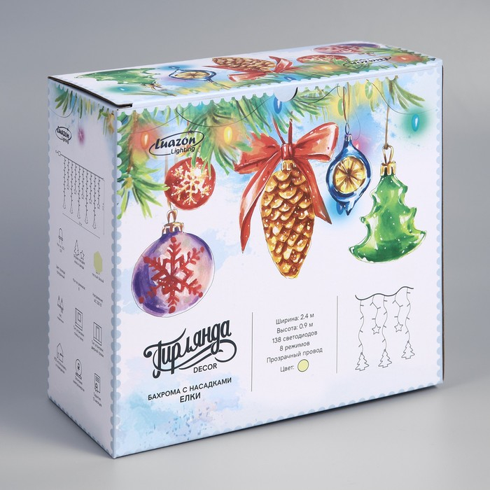 Гирлянда «Бахрома» 2.4 × 0.9 м с насадками «Ёлки», IP20, прозрачная нить, 138 LED, свечение тёплое белое, 8 режимов, 220 В