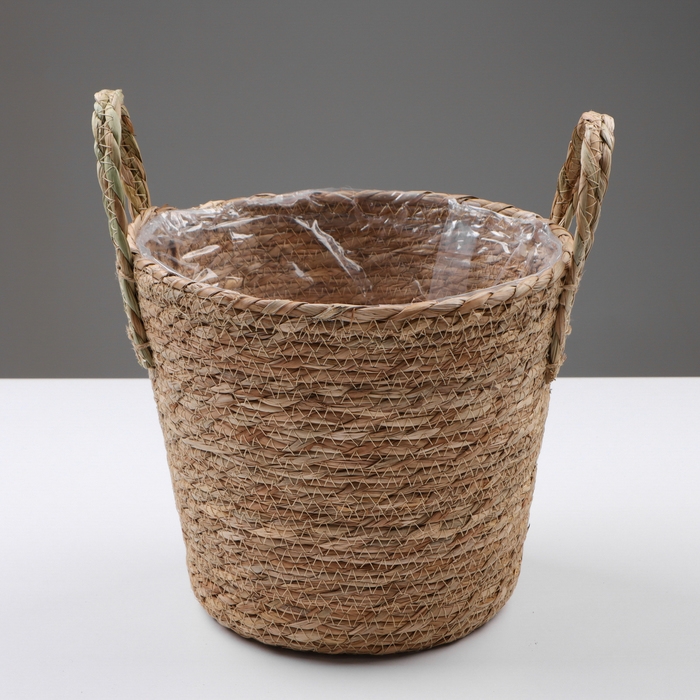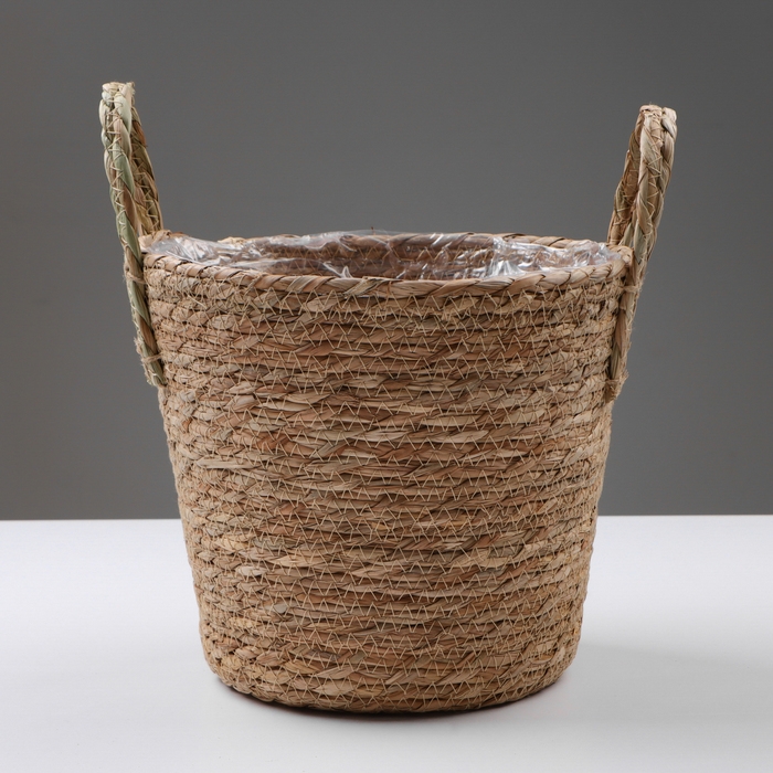 Кашпо плетеное "Сафари" с ручками, 25,5х25,5х23 см, натуральный