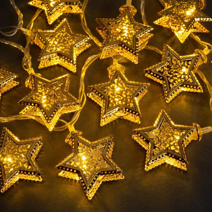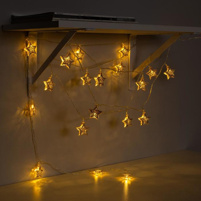 Гирлянда «Нить» 4 м с насадками «Звёздочка», IP20, прозрачная нить, 20 LED, свечение тёплое белое, 8 режимов, 220 В