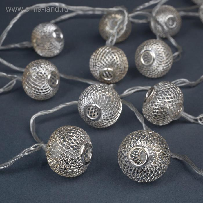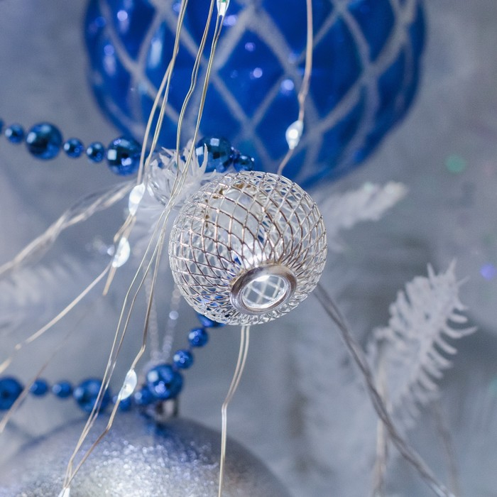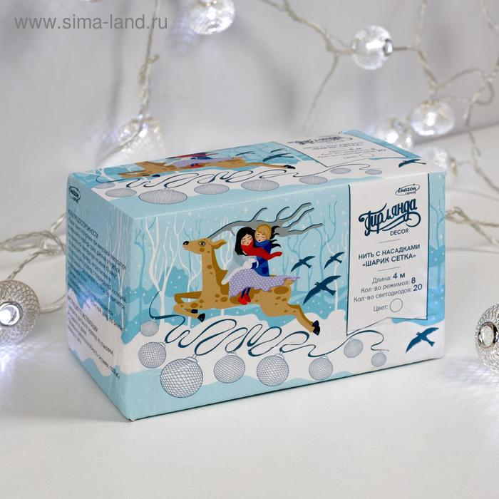 Гирлянда «Нить» 4 м с насадками «Шарик сетка», IP20, прозрачная нить, 20 LED, свечение белое, 8 режимов, 220 В