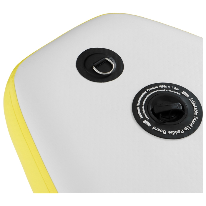 - Запирающийся нажимной клапан с защитой от повреждений обеспечивает герметичность. Кнопочная система помогает без труда приспустить давление в доске нажатием на кнопку в клапане.