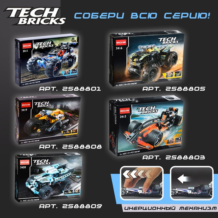 Конструктор с инерционным механизмом «Квадроцикл», 148 деталей