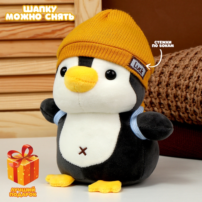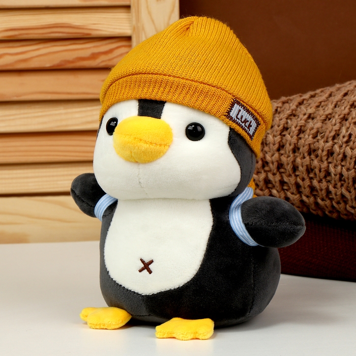 Мягкая игрушка «Пингвин» с рюкзаком, в жёлтой шапке, 22 см
