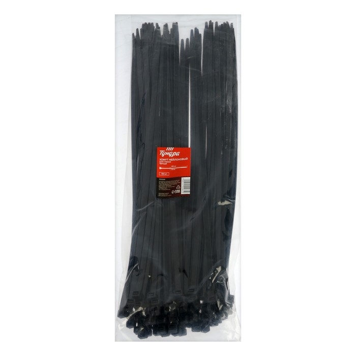 Хомут нейлоновый ТУНДРА krep для стяжки, 7.6х450 мм, черный, в упаковке 100 шт.