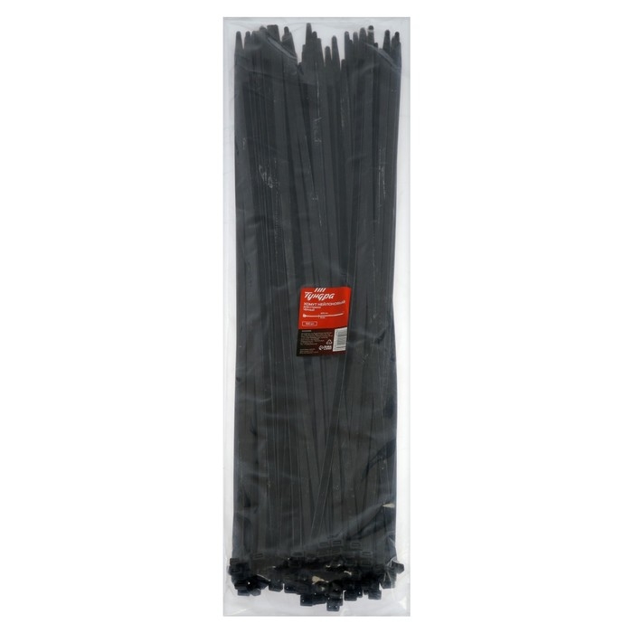 Хомут нейлоновый ТУНДРА krep для стяжки, 9х600 мм, черный, в упаковке 100 шт.