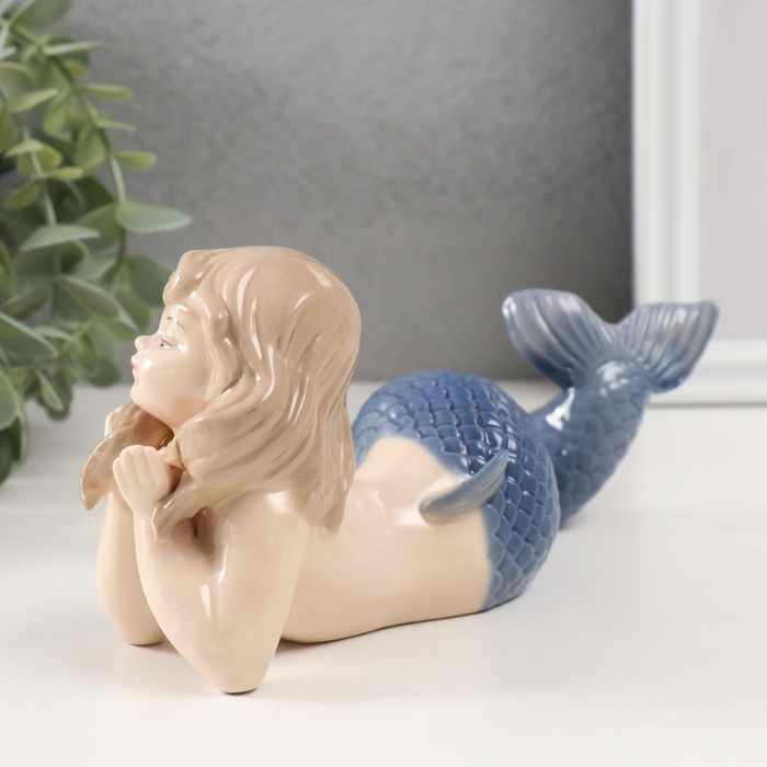 Сувенир керамика "Маленькая русалка с голубым хвостом" 6,5х20,5х9 см
