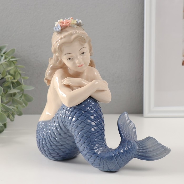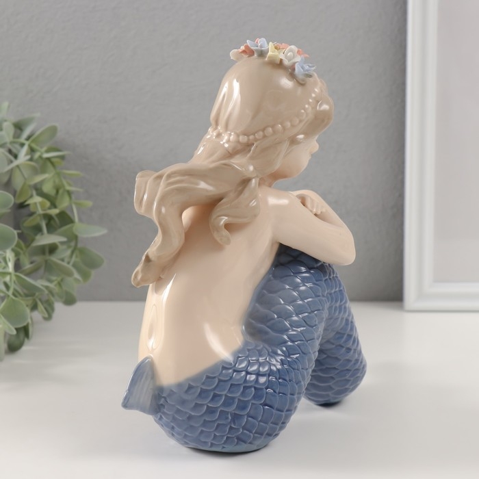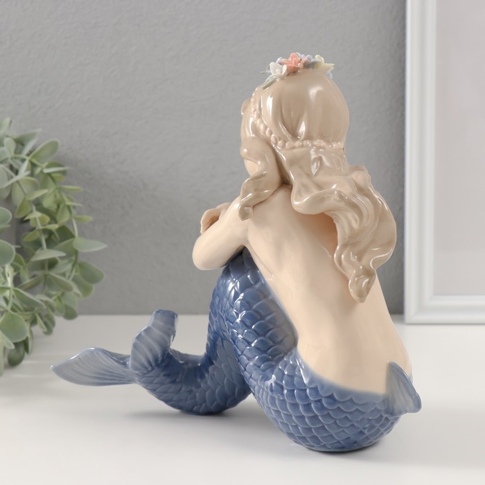 Сувенир керамика "Русалочка с голубым хвостом и цветами в волосах" 7,5х21х19 см