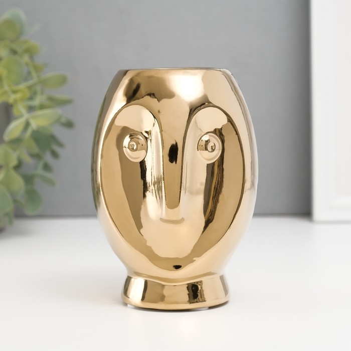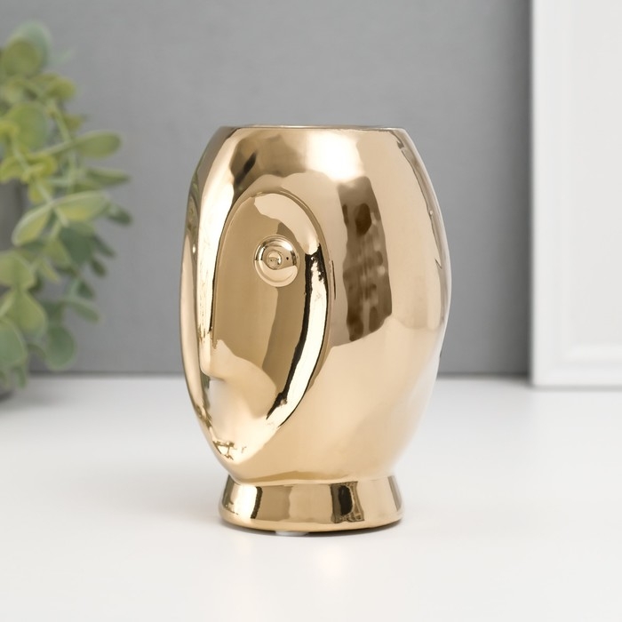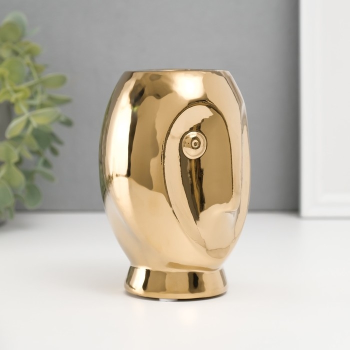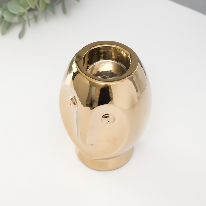 Подсвечник керамика на 1 свечу "Сова Сипуха" d=3,5 золото 9х8,5х12,5 см