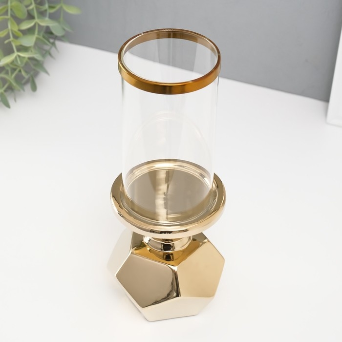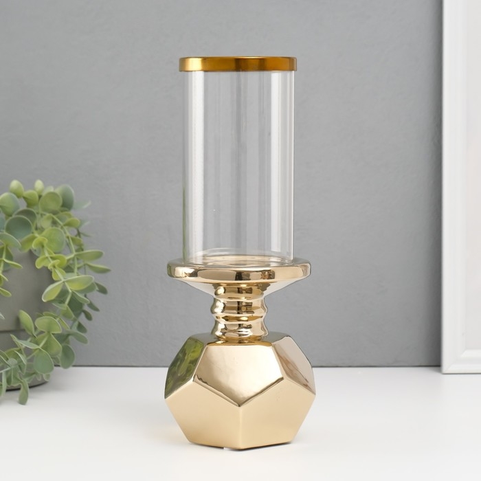 Подсвечник керамика, стекло на 1 свечу "Грани" d=7,5 см золото 10,5х10,5х27 см