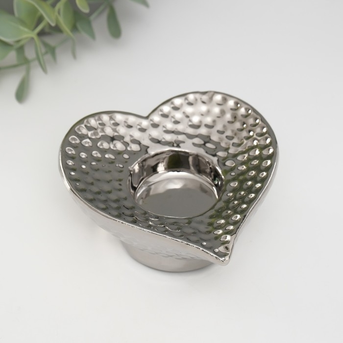 Подсвечник керамика на 1 свечу "Сердце" d=4 см серебро 10,2х10,2х4,3 см