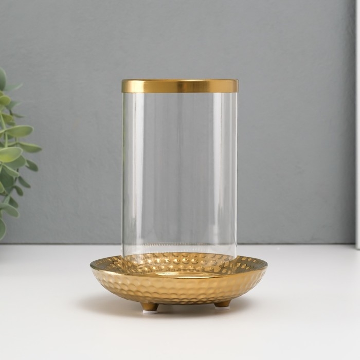 Подсвечник керамика, стекло на 1 свечу "Моро" d=8 см золото 12х12х17,2 см