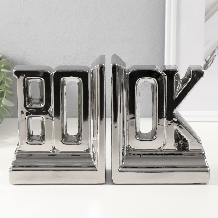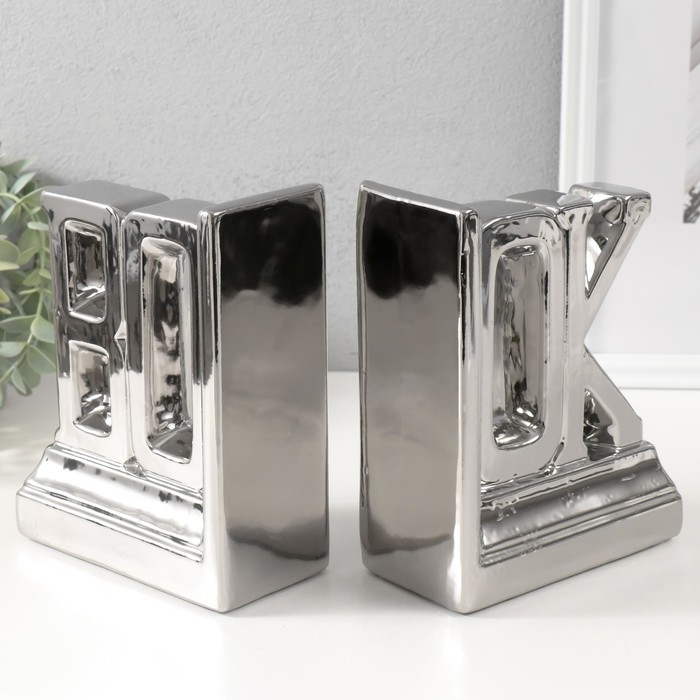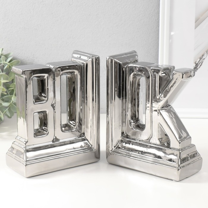 Держатели для книг керамика "Надпись - книга" набор 2 шт серебро 28х7х17,5 см