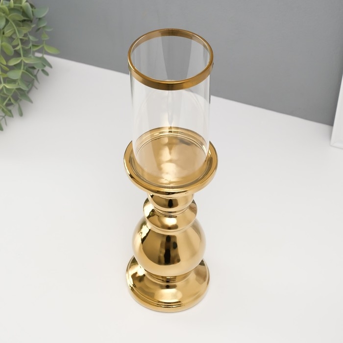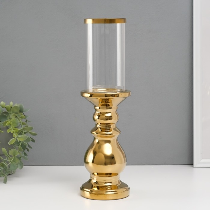 Подсвечник керамика, стекло на 1 свечу "Алберо" d=7,5 см золото 9,5х9,5х35 см