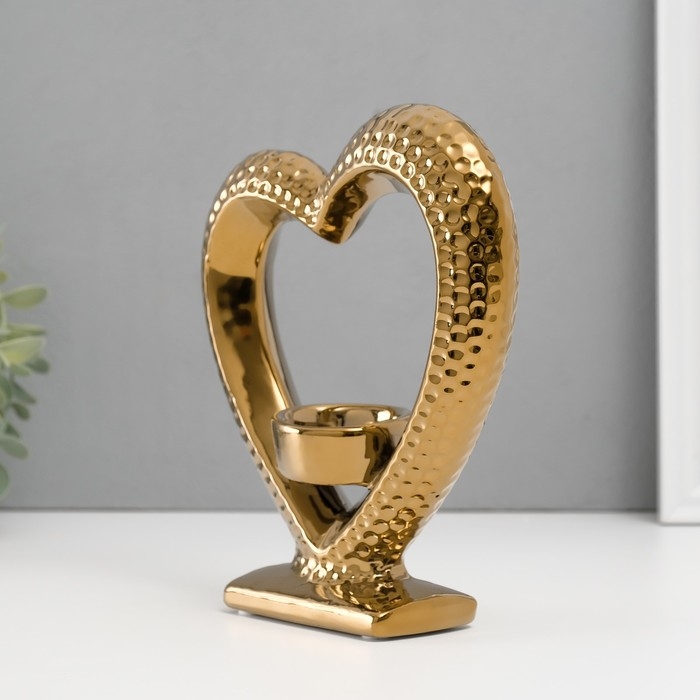 Подсвечник керамика на 1 свечу "Сердце на подставке" d=4 см золото 17х5,5х19,5 см