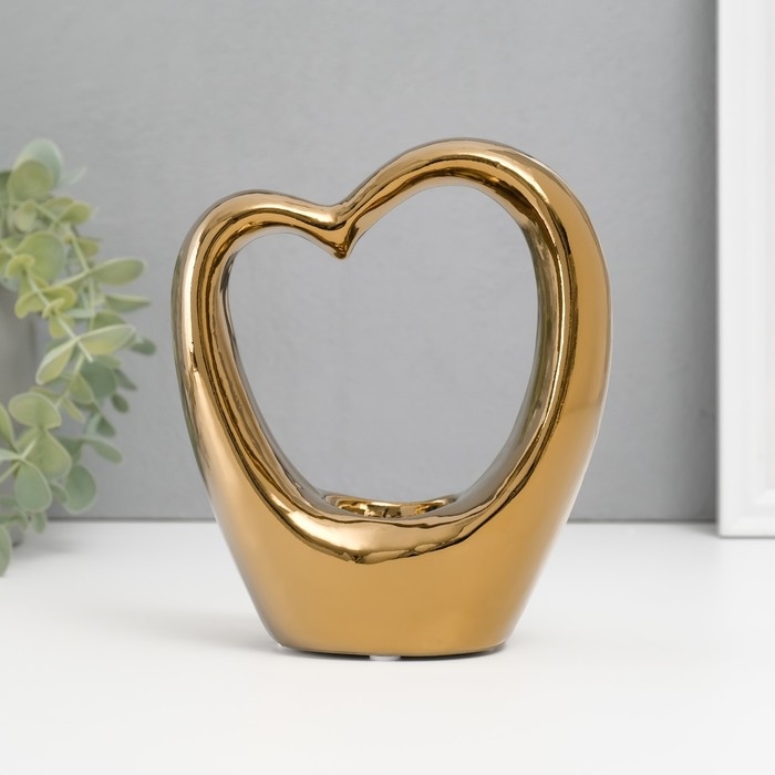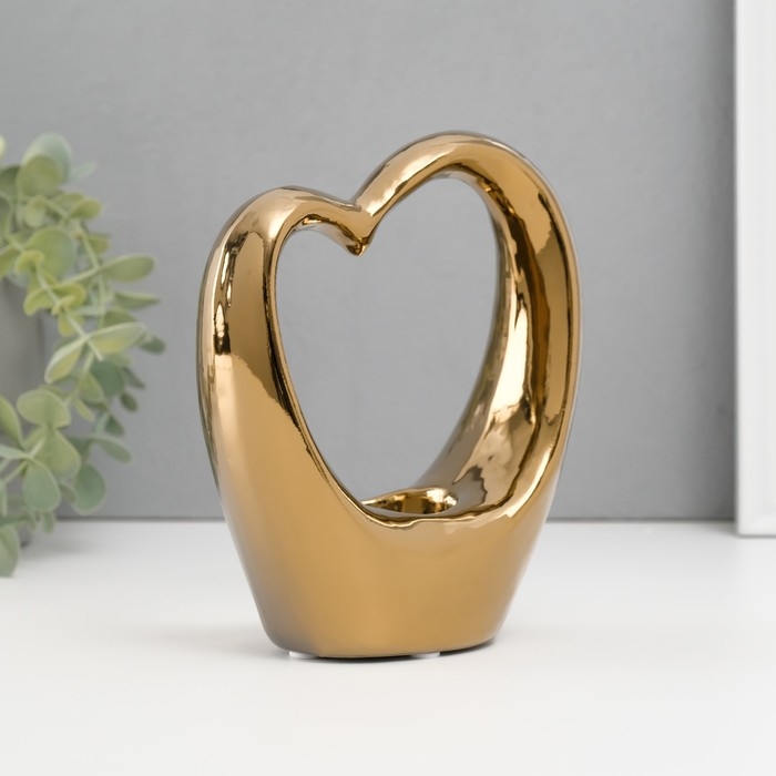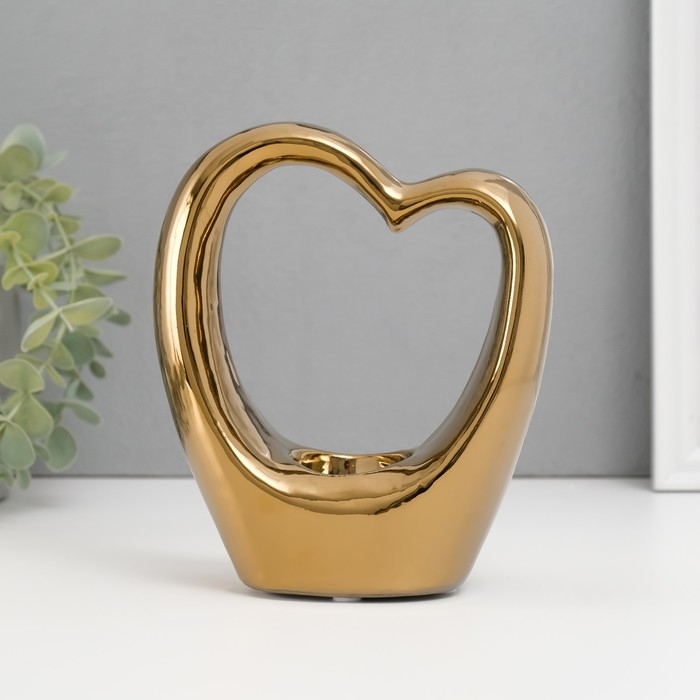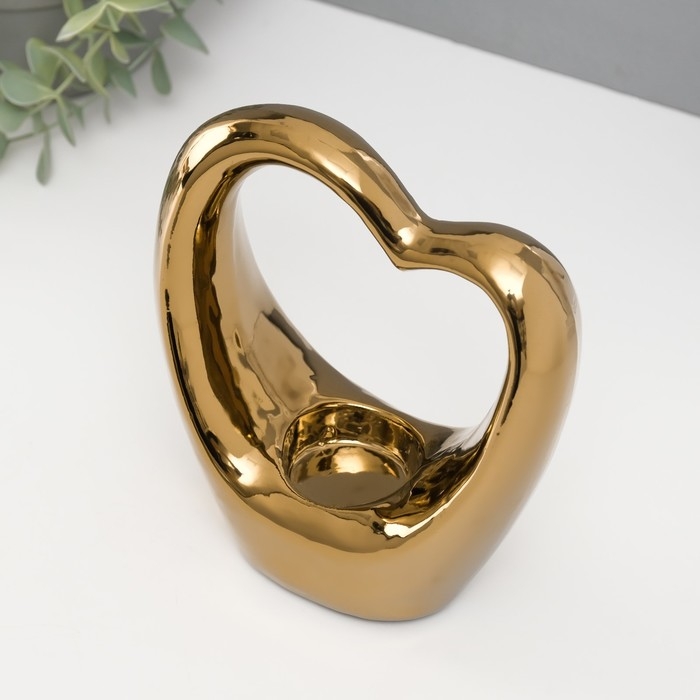 Подсвечник керамика на 1 свечу "Сердце" d=4 см золото 14,5х6х17 см