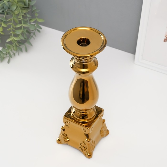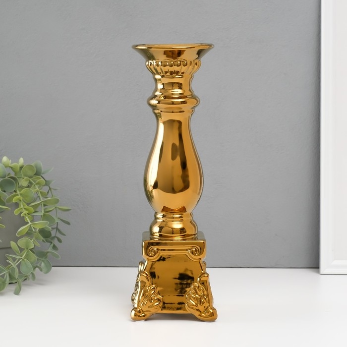 Подсвечник керамика на 1 свечу "Нуово" d=1,5 см золото 10х10х31,5 см
